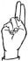 На ћирилици написано ХЕЛЕНА БУМБАРЕВИЋ састоји се из 16 слова [?]. Исписано ћириличном једноручном азбуком за глувонеме:
